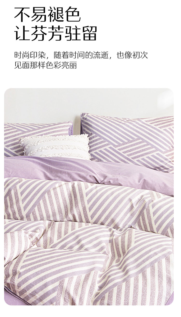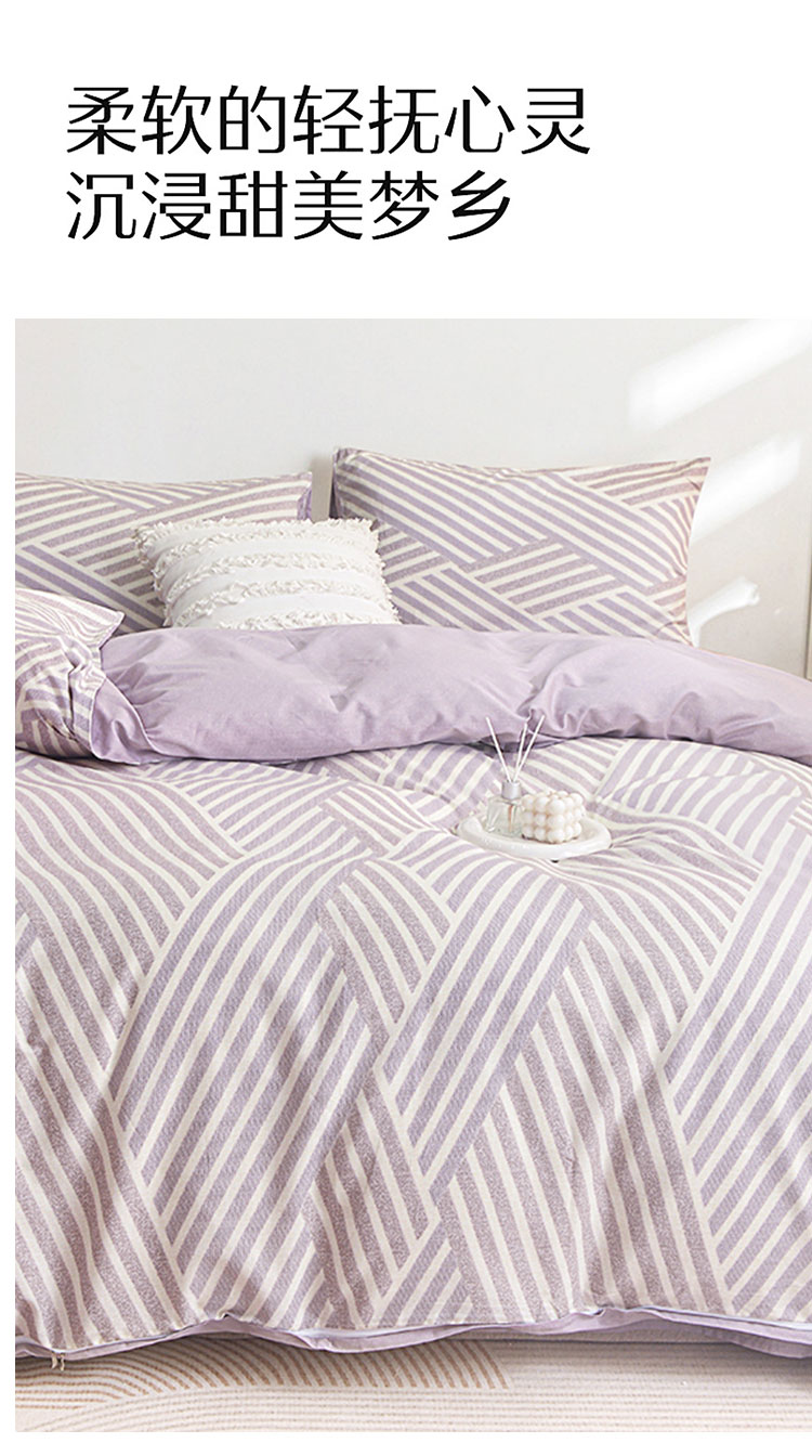 100%全棉四件套, 咖灰几何条纹交织出简约现代感。全棉面料透气亲肤,裹住肌肤的每一刻都满是自然柔润;低饱和配色+利落线条,适配极简、侘寂等家居风格,铺床即造高级氛围感,用纯棉的温柔与设计感,为睡眠注入松弛格调 。