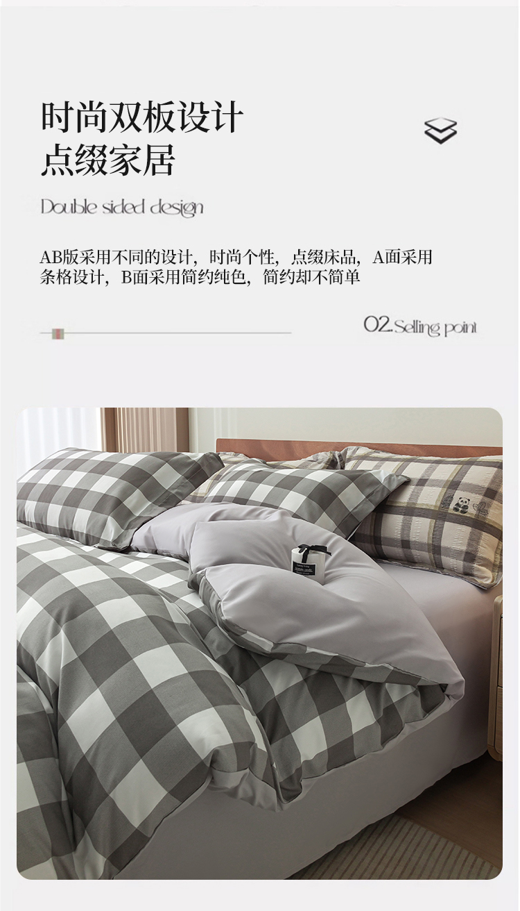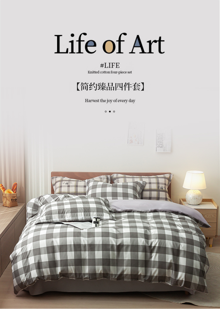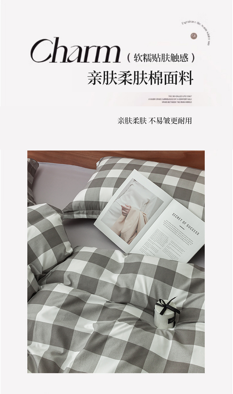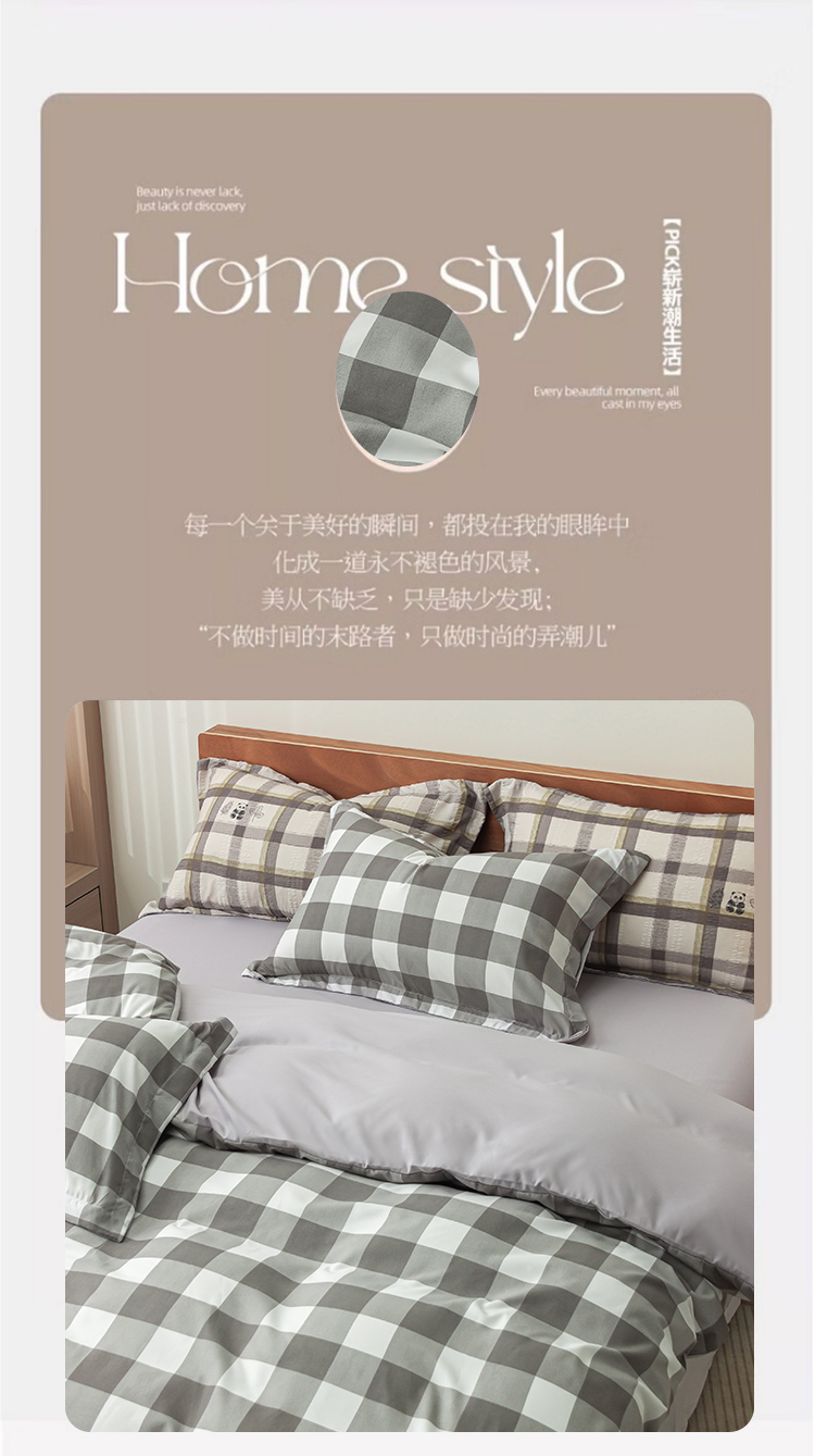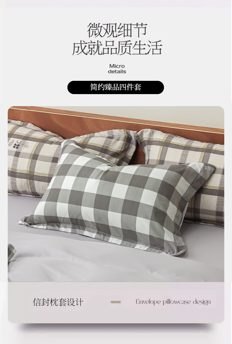 杉杉家纺简约臻品四件套-灰白格 SS-TJ3016