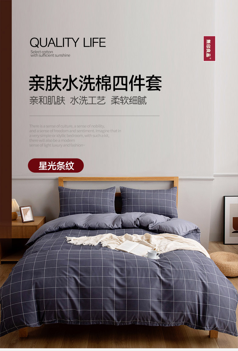 無印良品亲肤水洗棉四件套--星光条纹 MUJI-TJ22-61