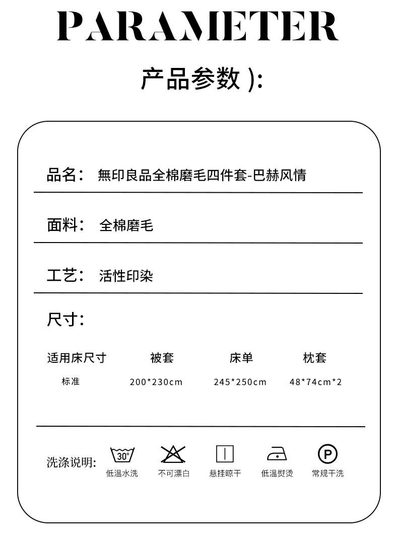 無印良品全棉磨毛四件套-巴赫风情(特价) MUJI-TJ23-77