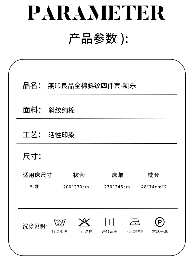 無印良品 無印优品全棉斜纹四件套-凯乐 MUJI-TJ23-81