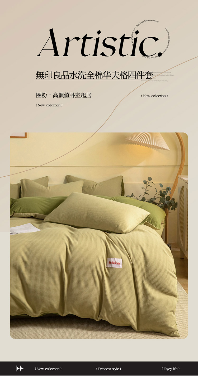 無印良品水洗全棉华夫格四件套-卡布奇诺 MUJI-TJ24-19