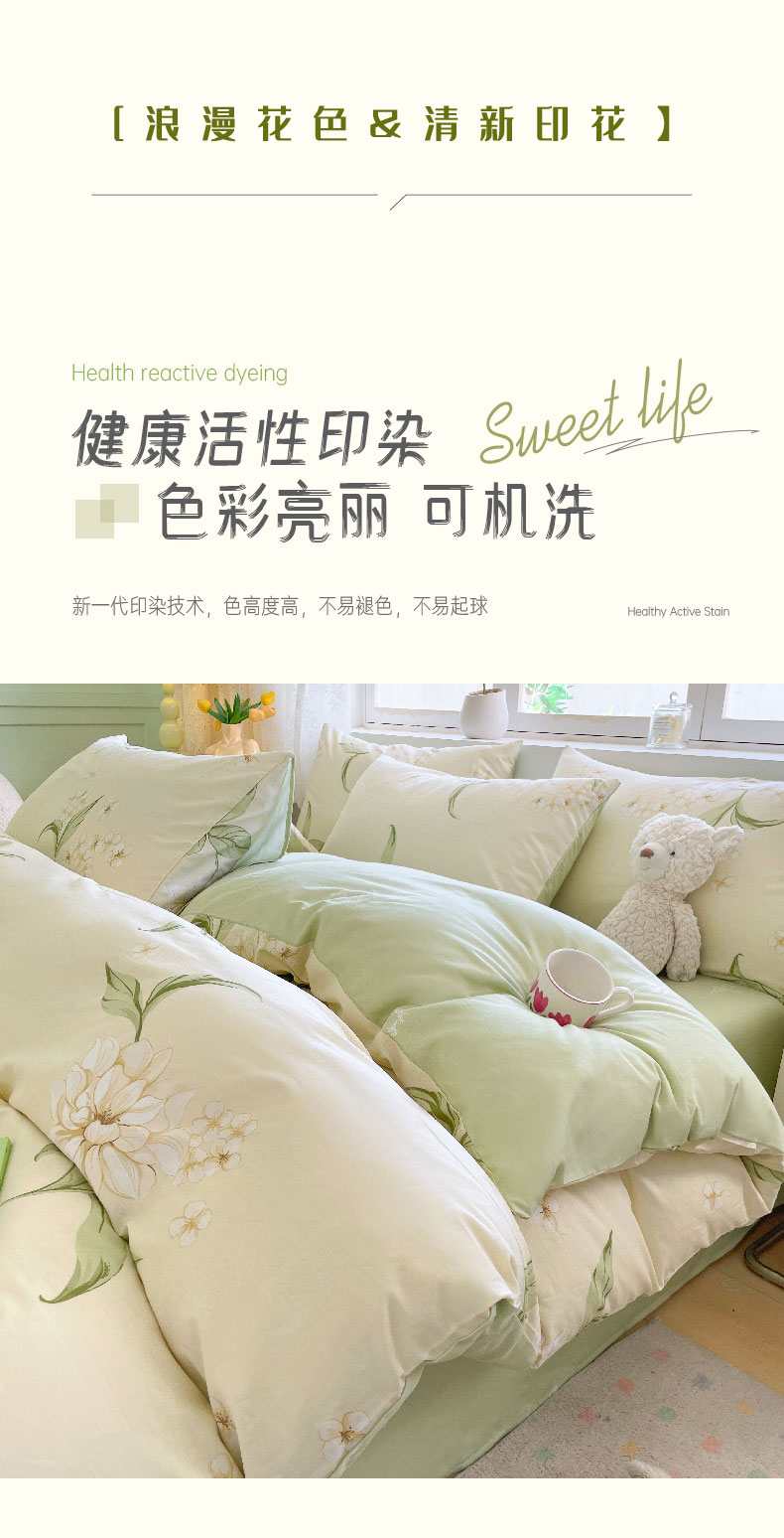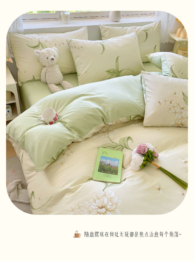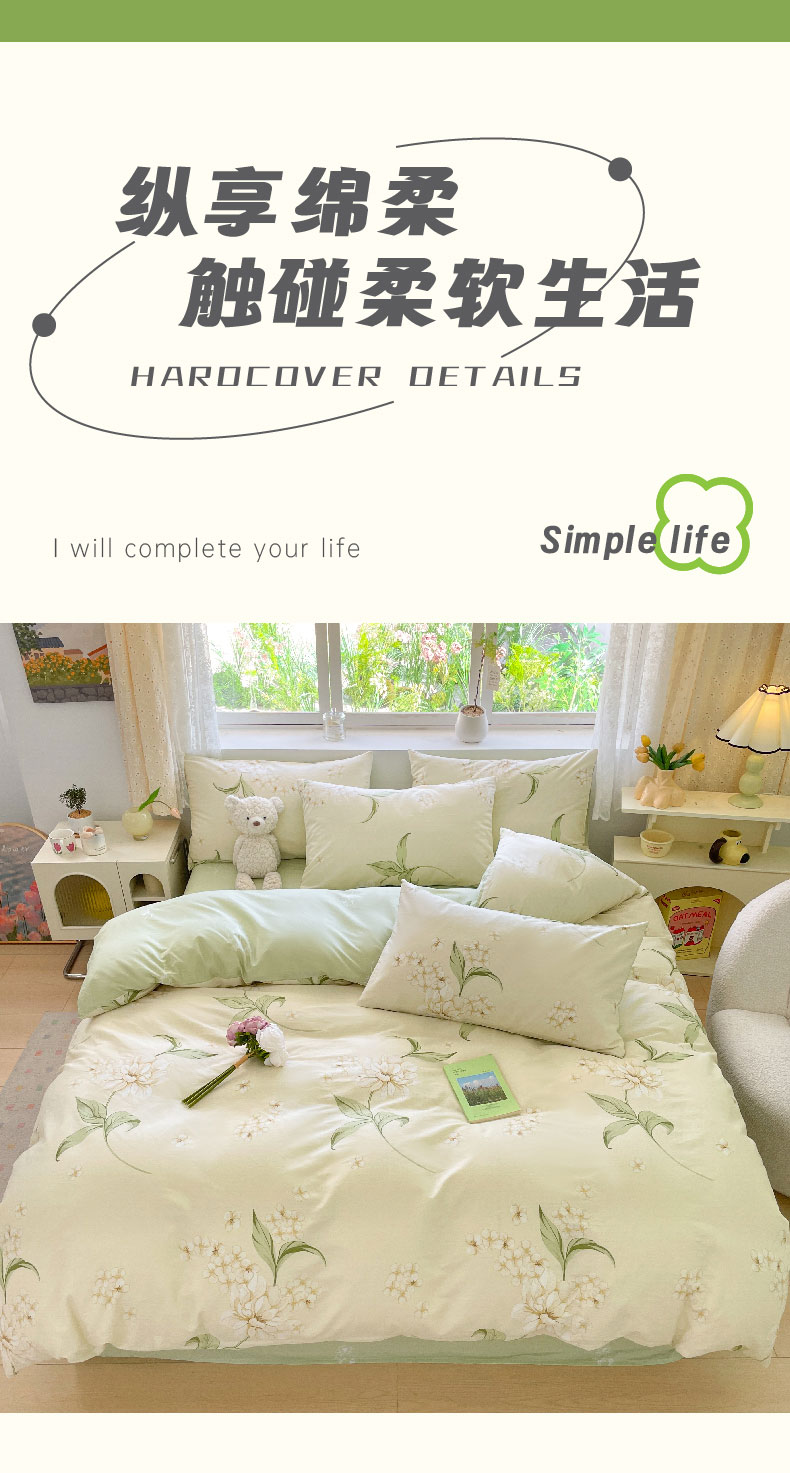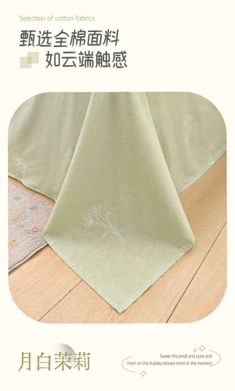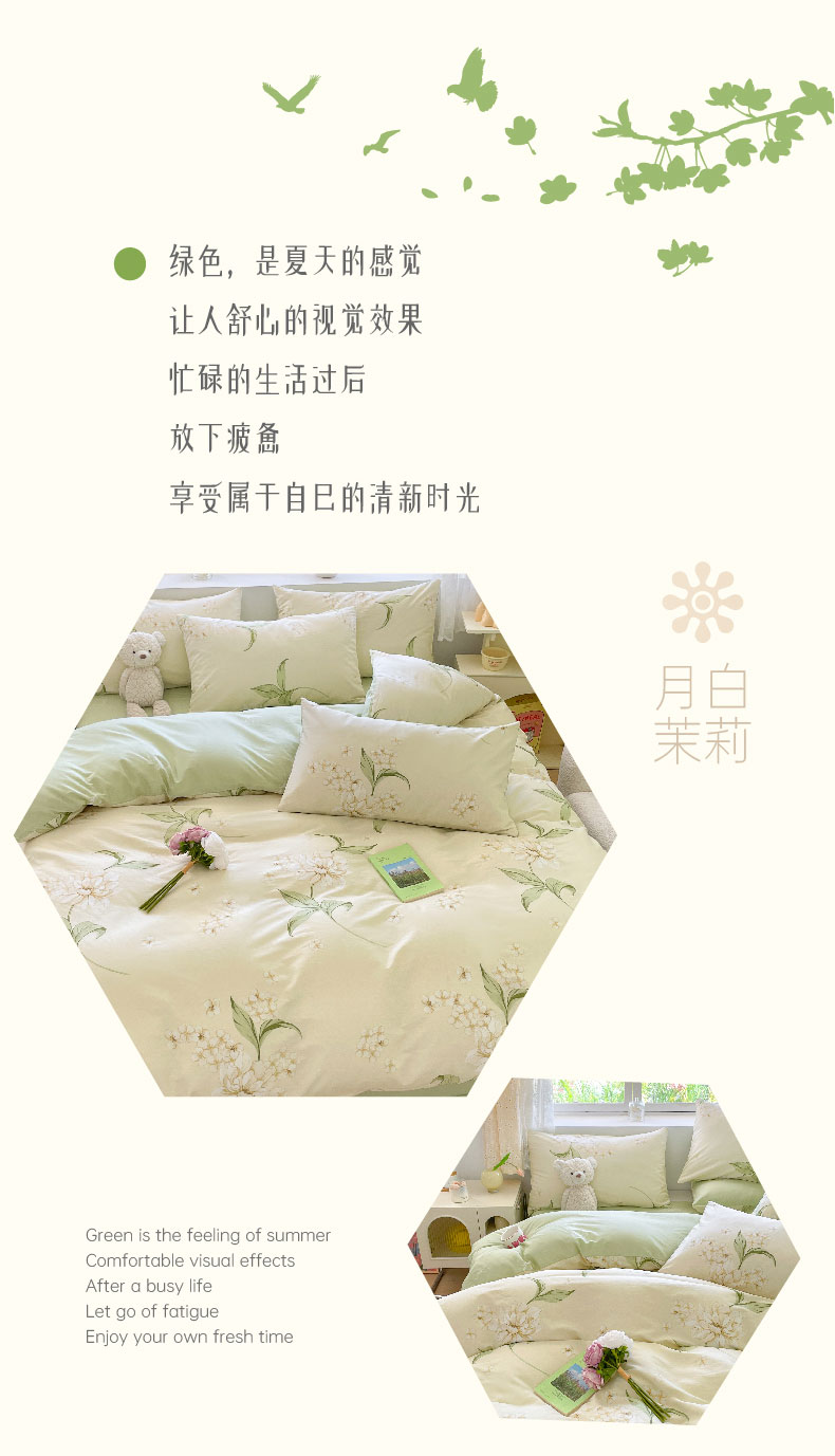 雅鹿-全棉斜纹印花四件套ZZLY-SZT2408(花色:月白茉莉)
