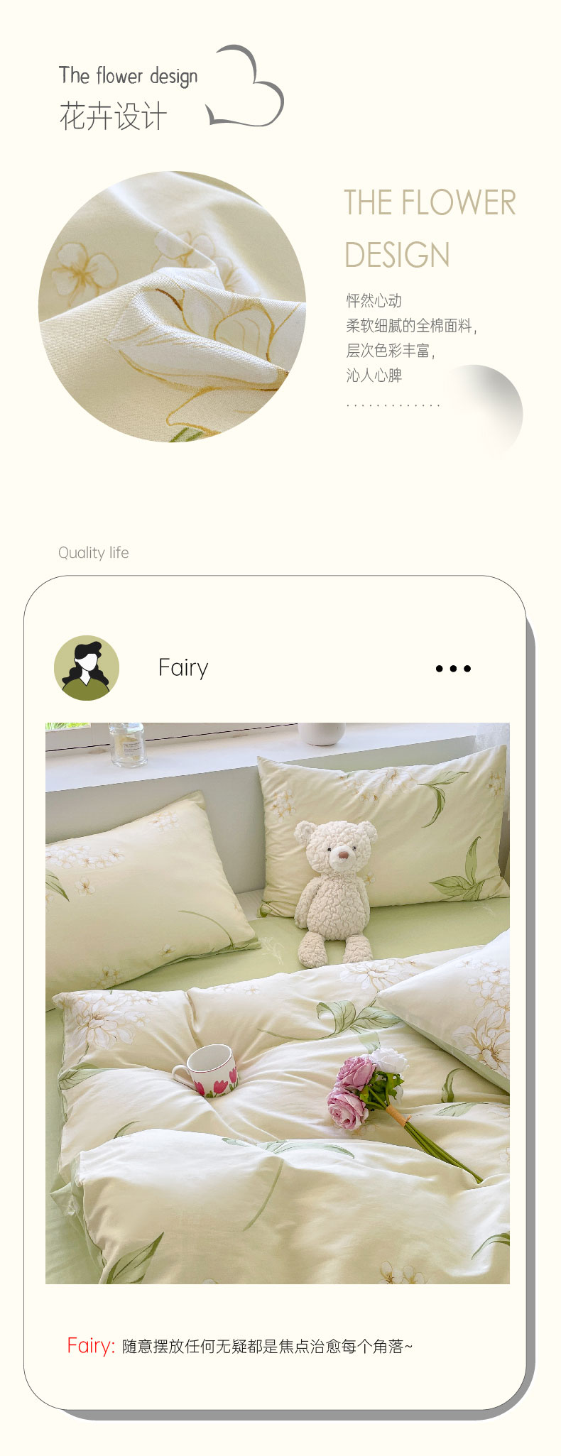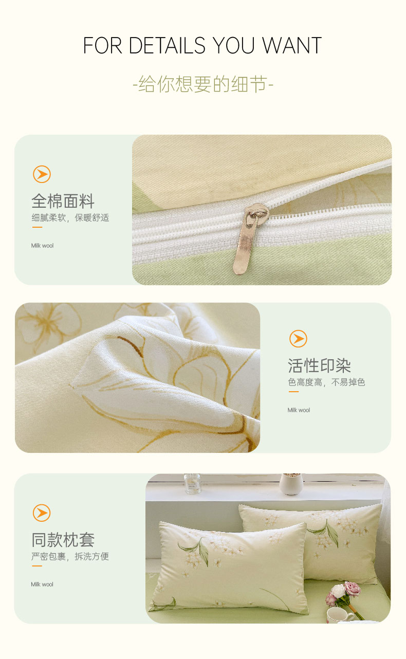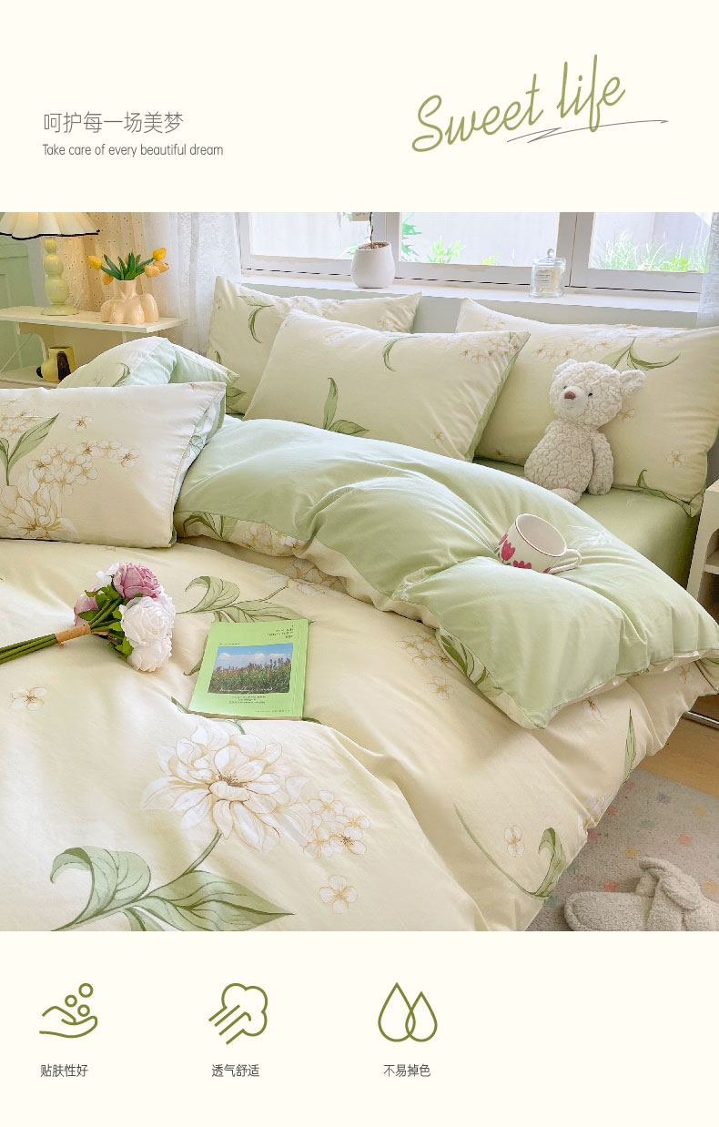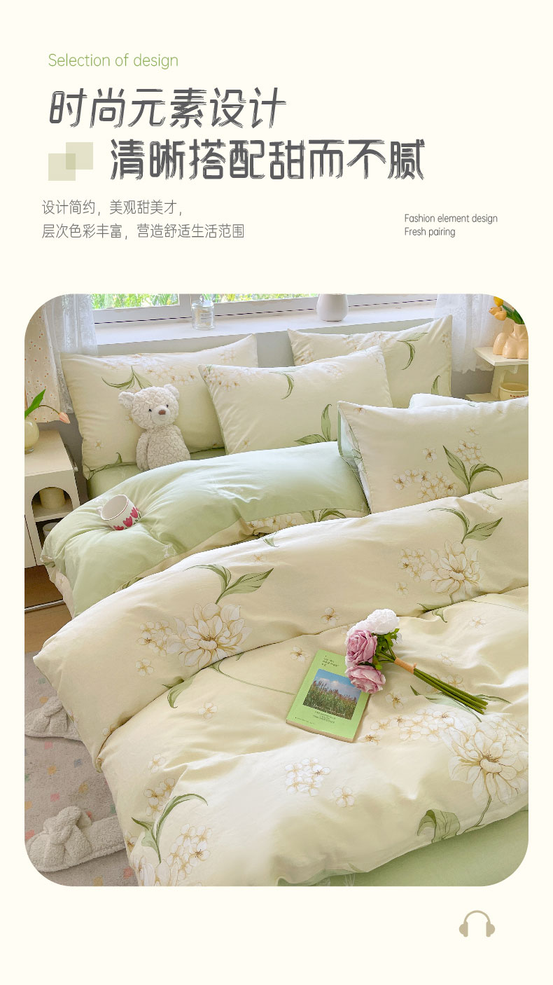 雅鹿-全棉斜纹印花四件套ZZLY-SZT2408(花色:月白茉莉)