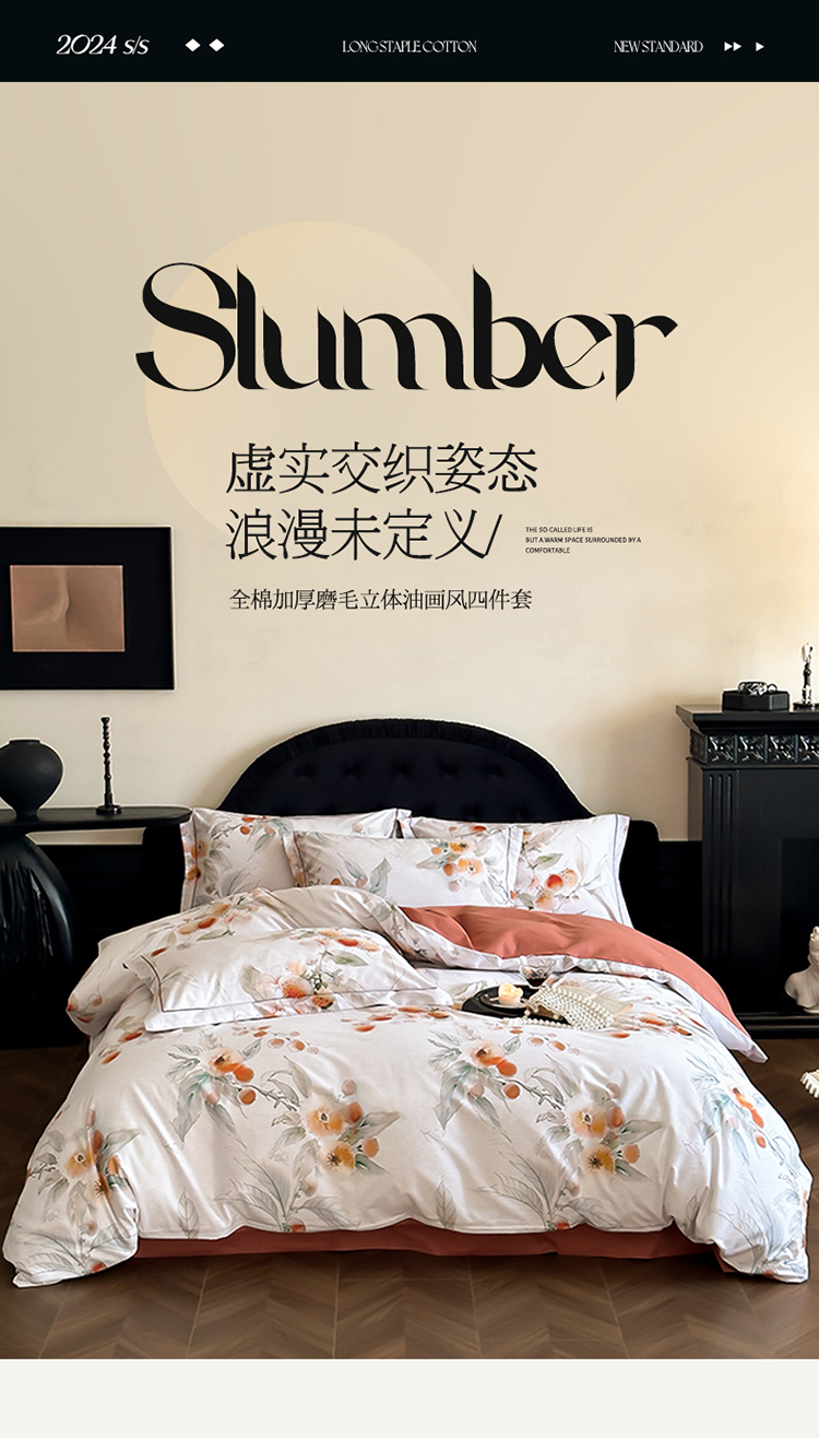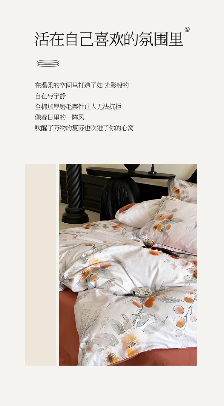 雅鹿-全棉立体印花磨毛四件套ZZLY-SZT2410(花色:喜上眉梢)