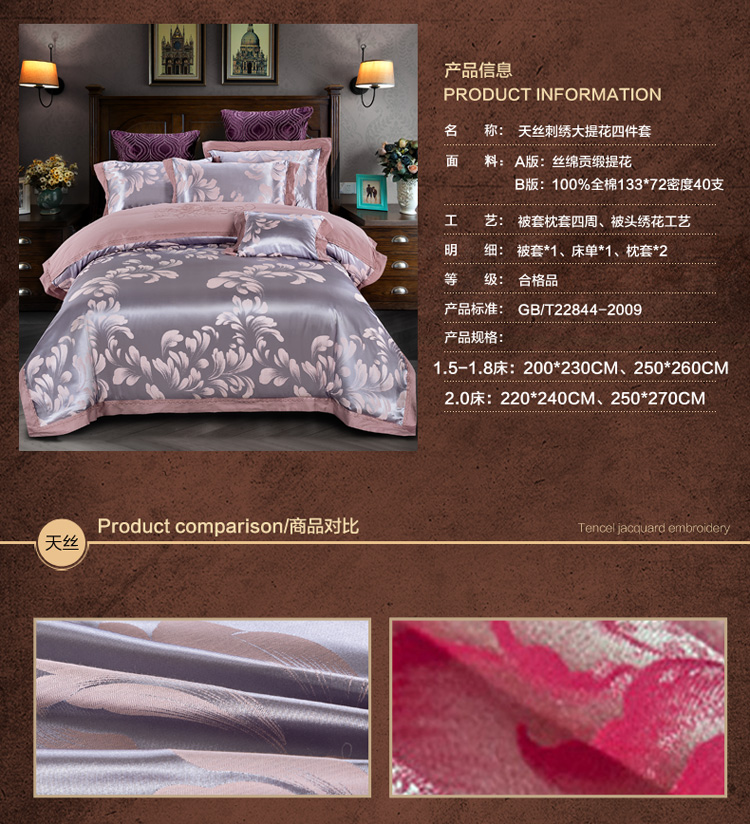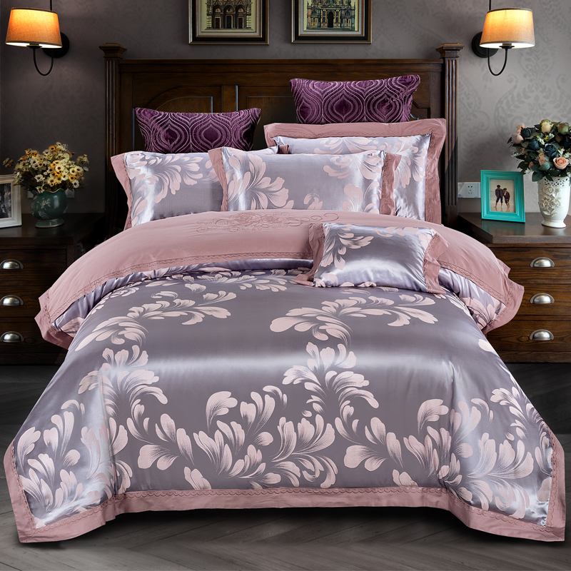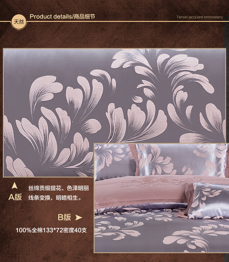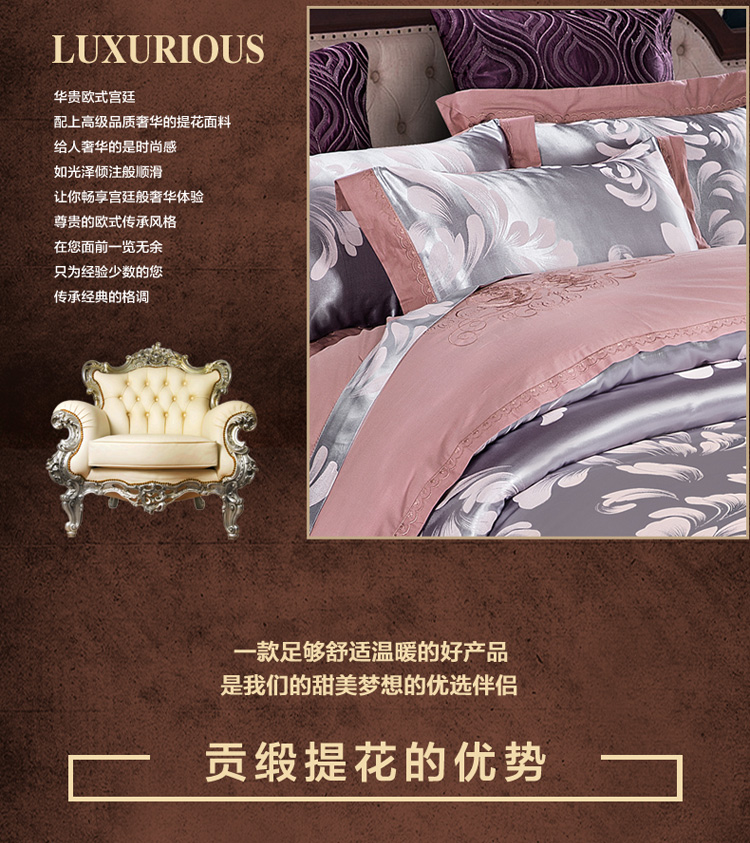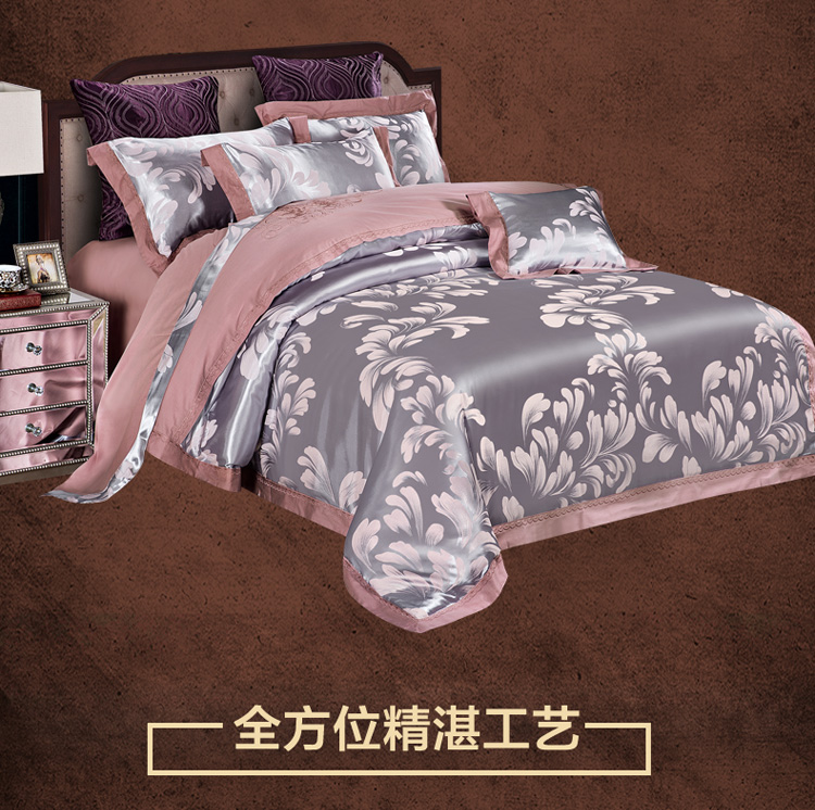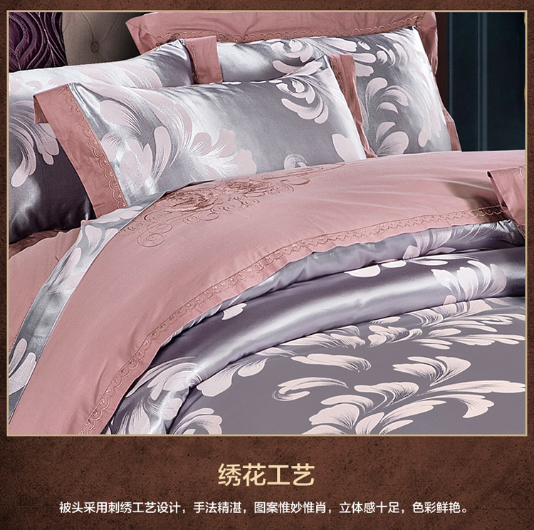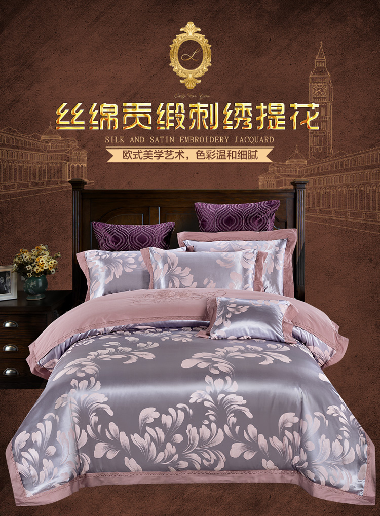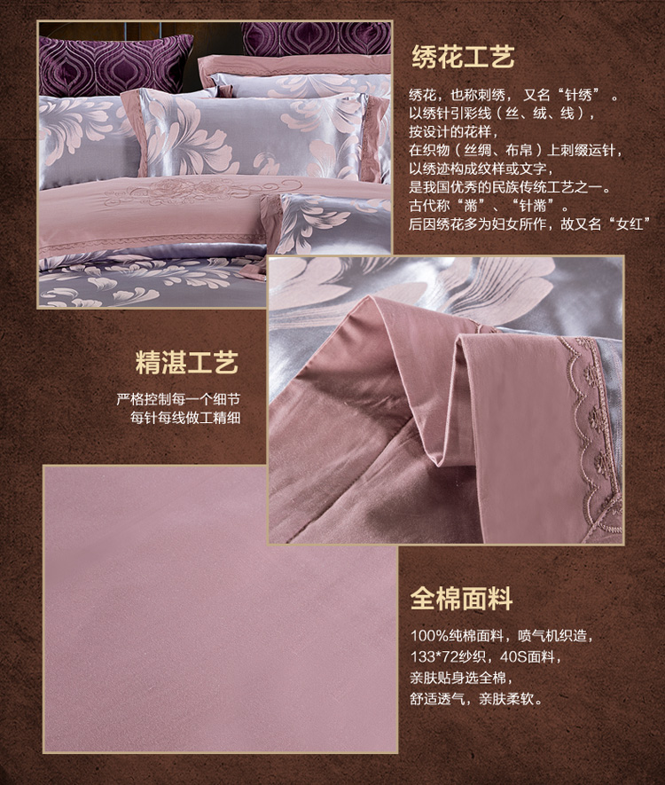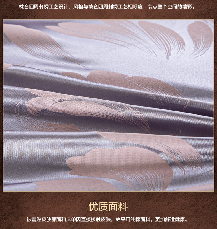雅鹿-贡缎提花绣花四件套ZZLY-SZT2411(花色:叶语浪漫-浅紫)