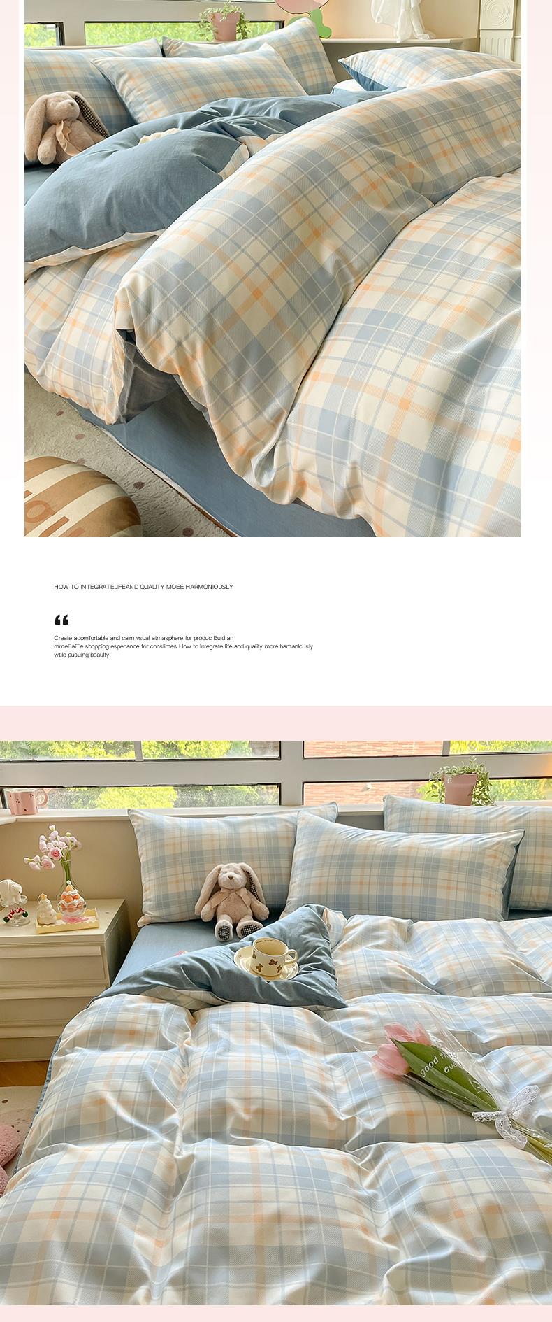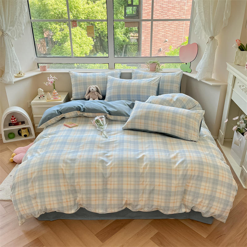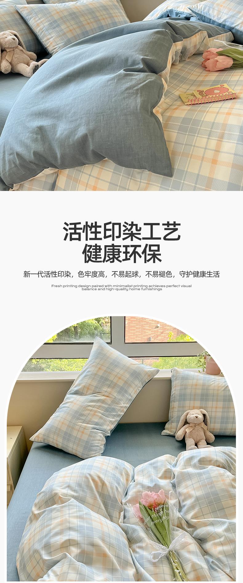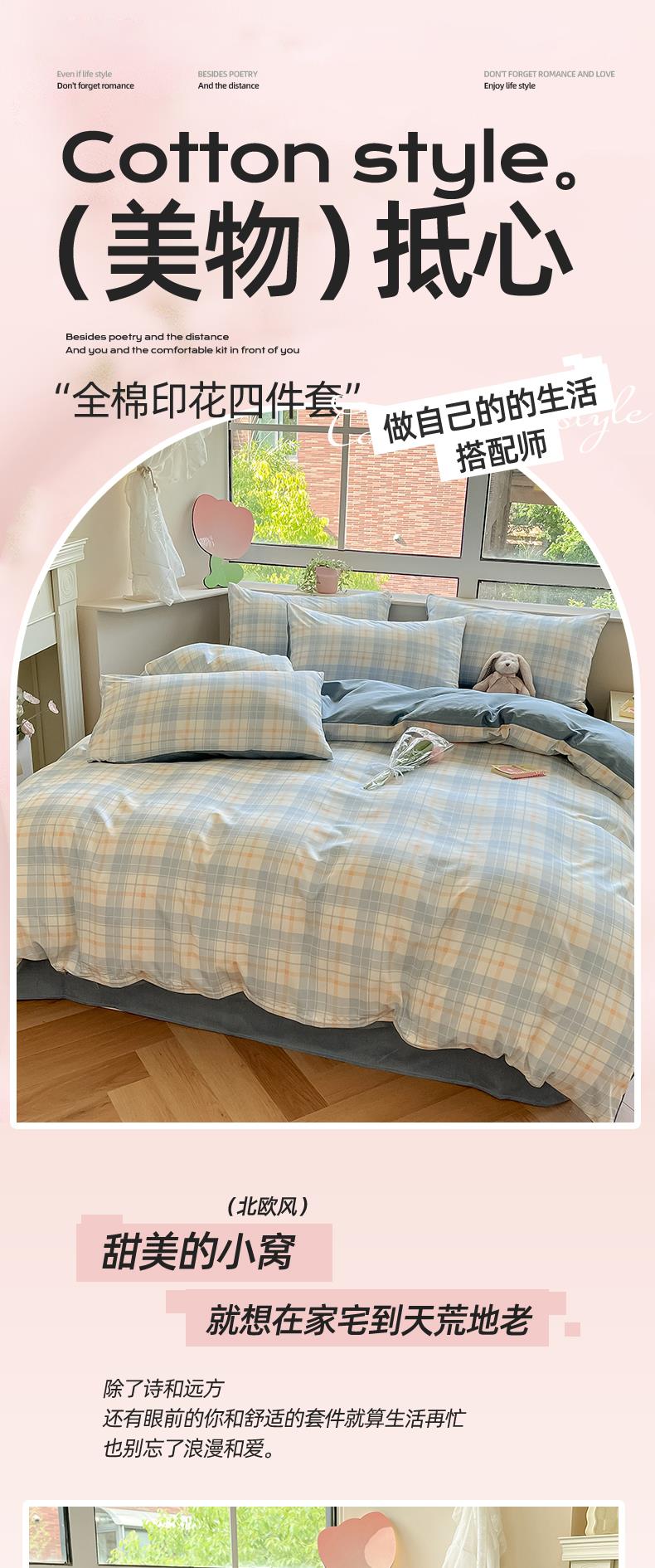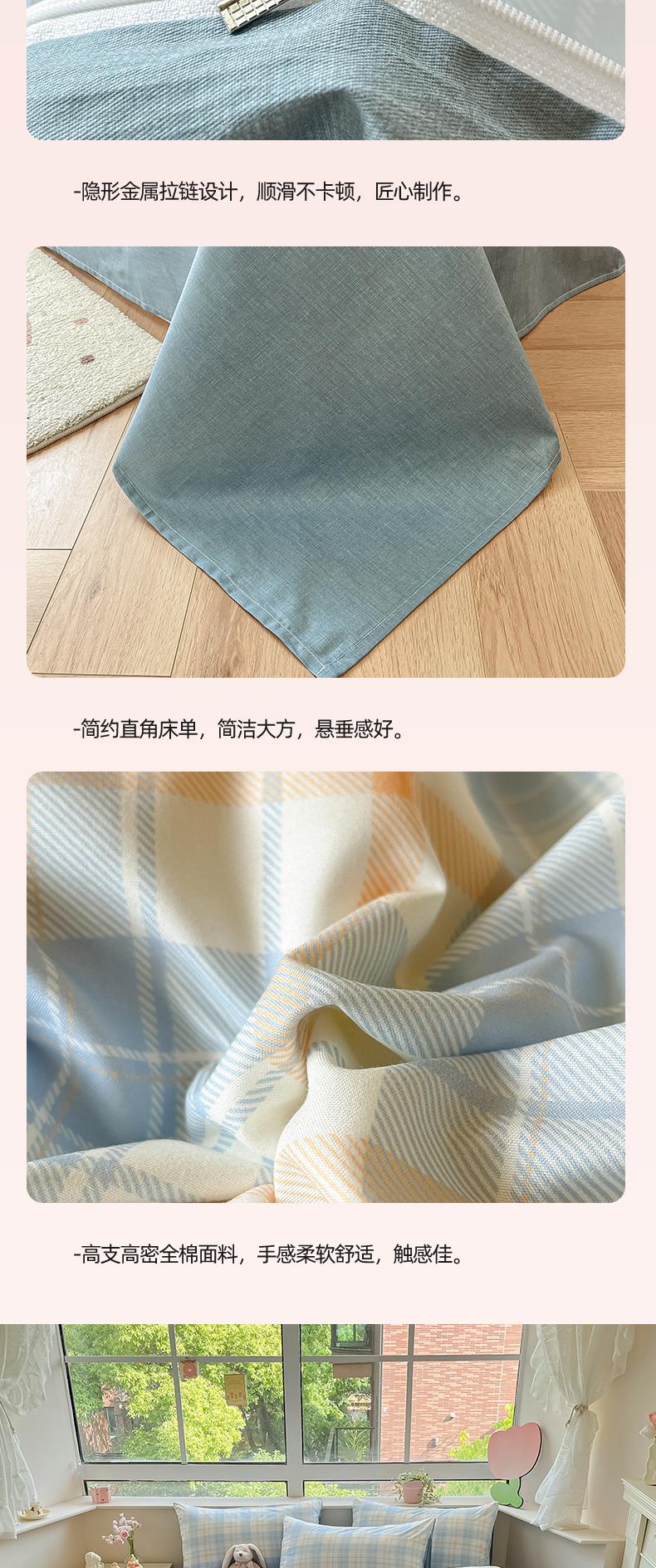 雅鹿-温馨全棉四件套YLZZLY23(花色:蓝白小格)