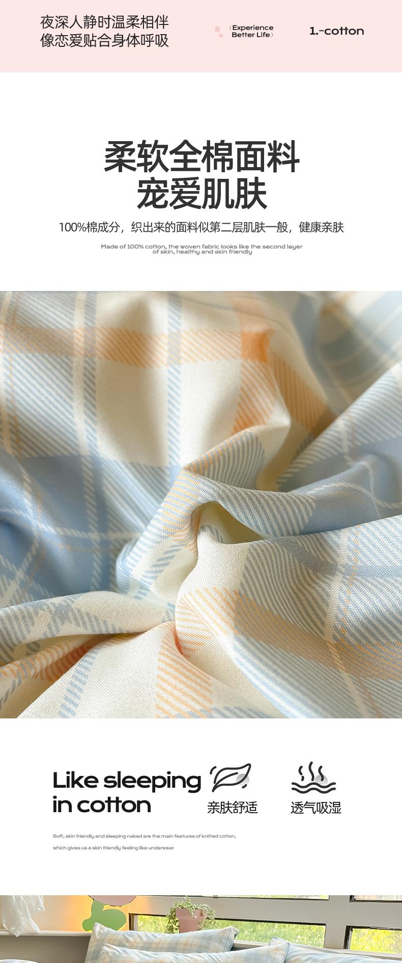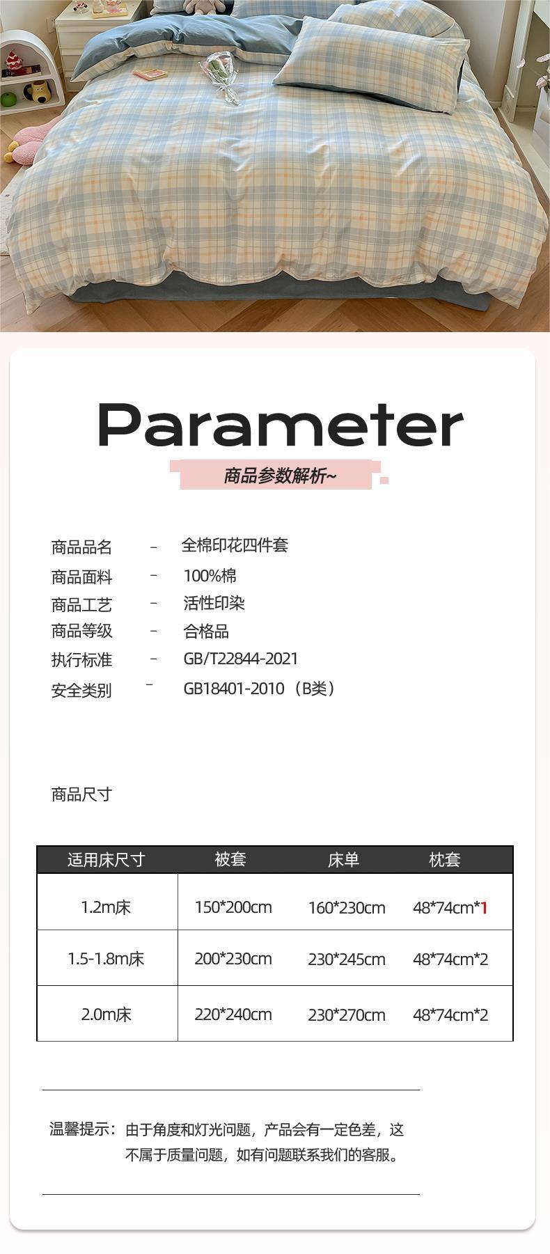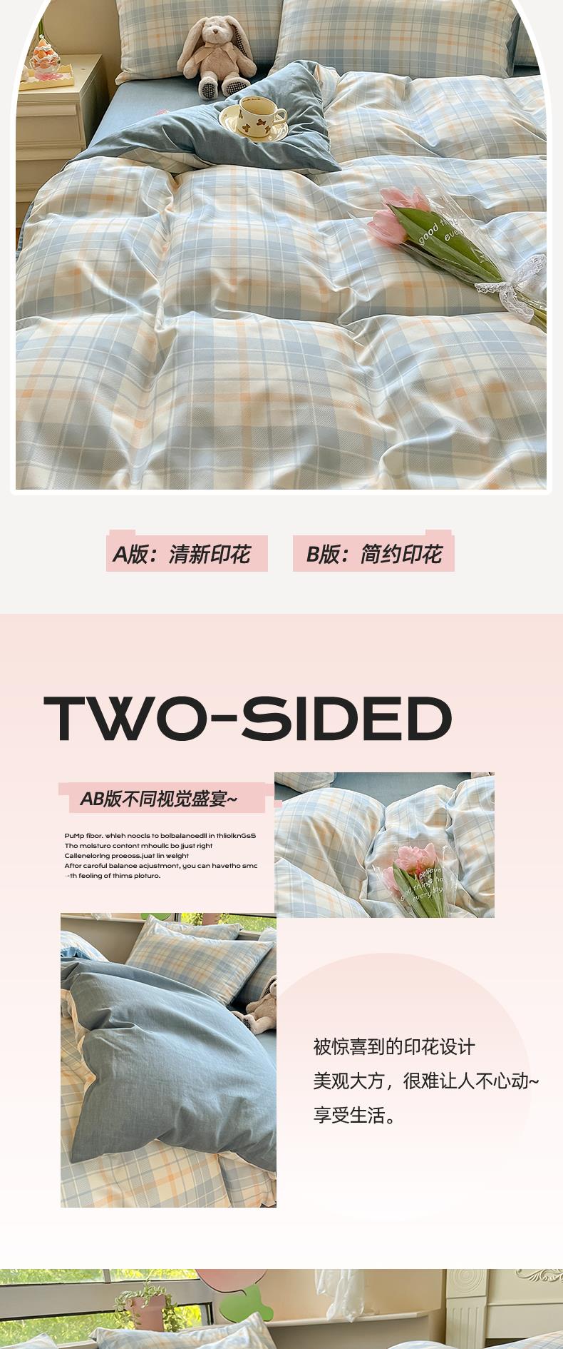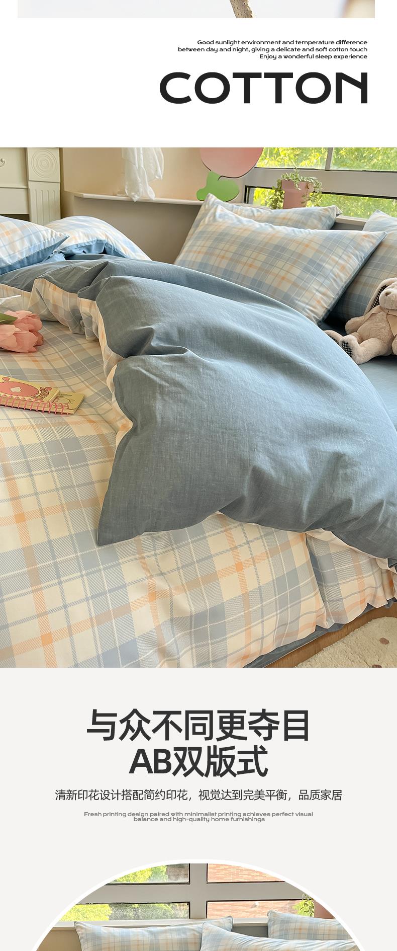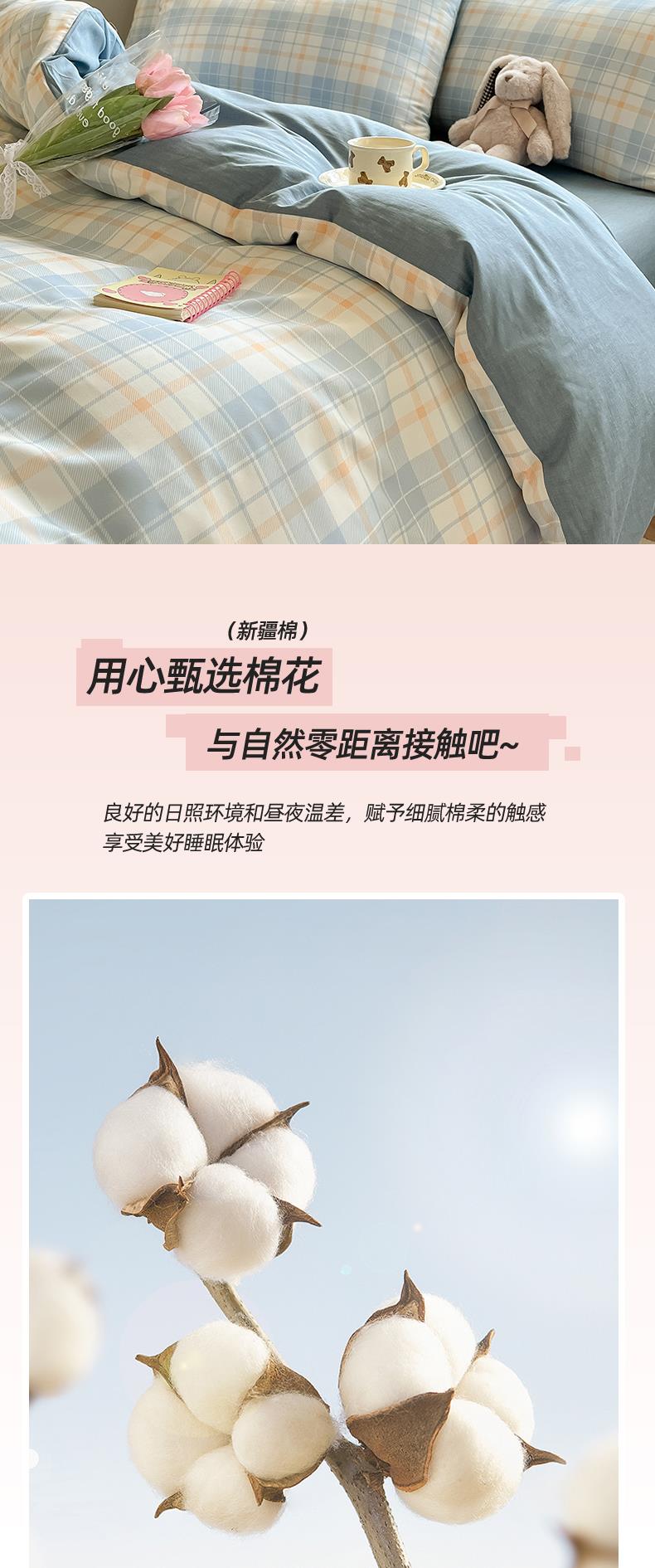 雅鹿-温馨全棉四件套YLZZLY23(花色:蓝白小格)