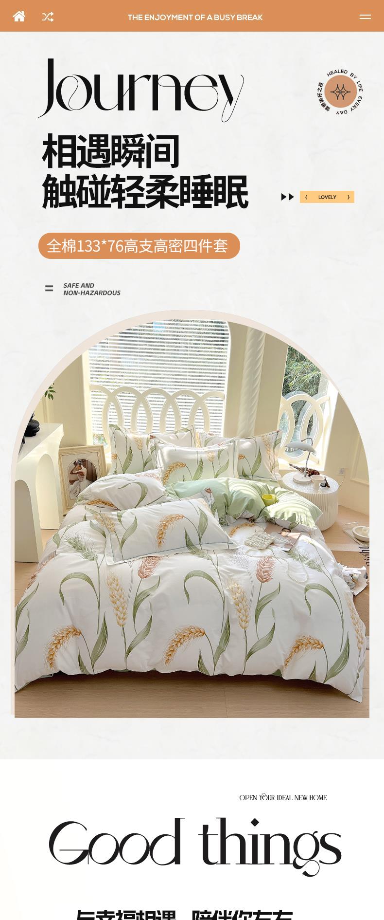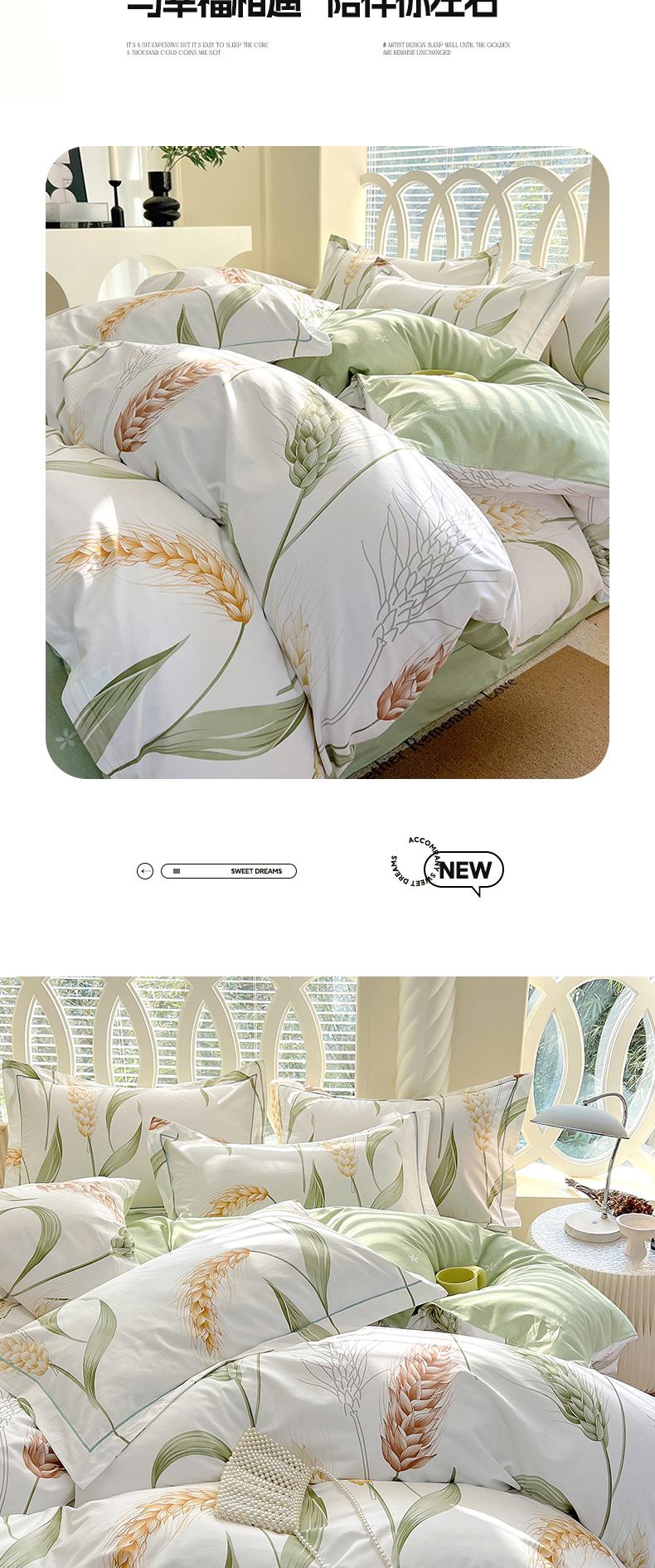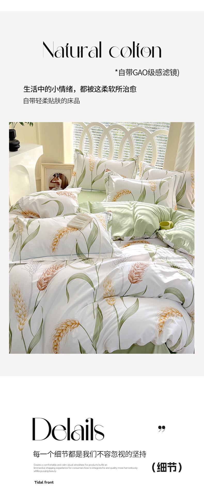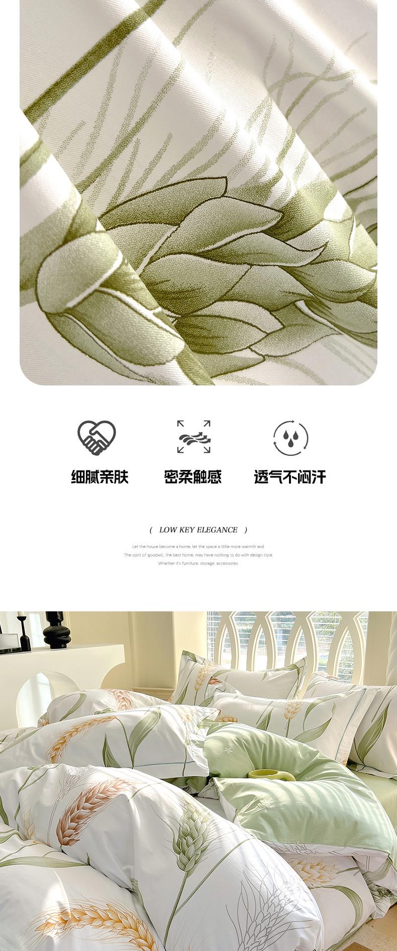 雅鹿-轻奢全棉四件套YLZZLY25(花色:风吹麦浪)