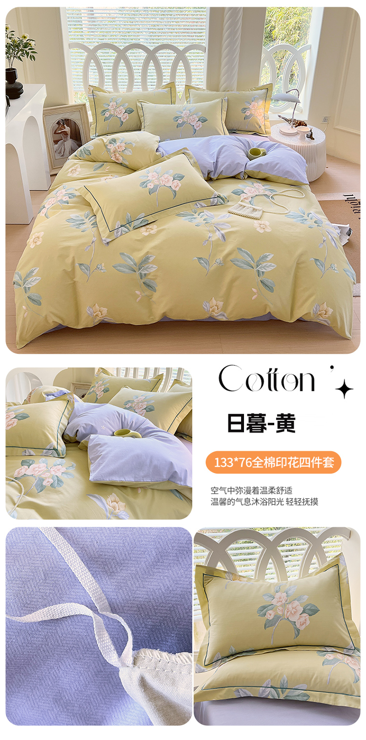 雅鹿-轻奢全棉四件套YLZZLY25(花色:日暮-黄)