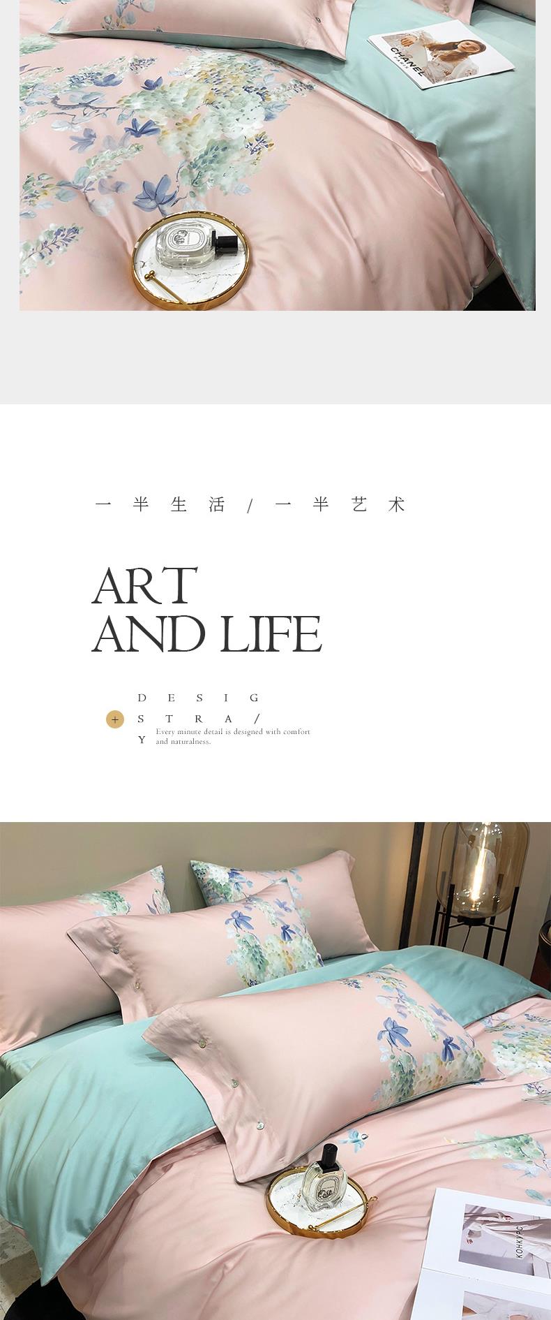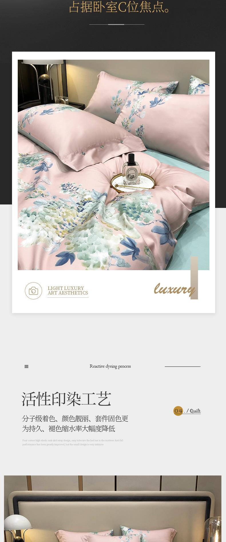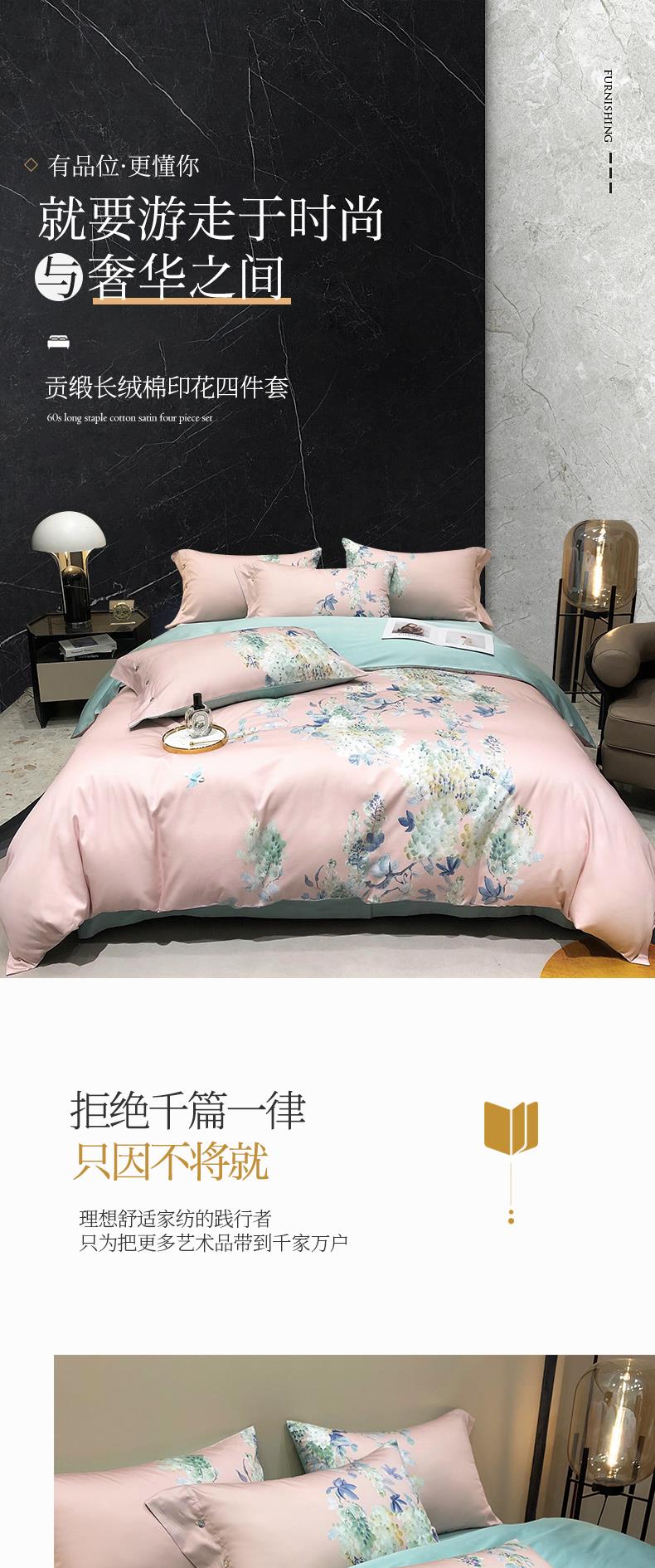 雅鹿-60支贡缎长绒棉印花四件套YLZZLY26(花色:恬淡雅致)