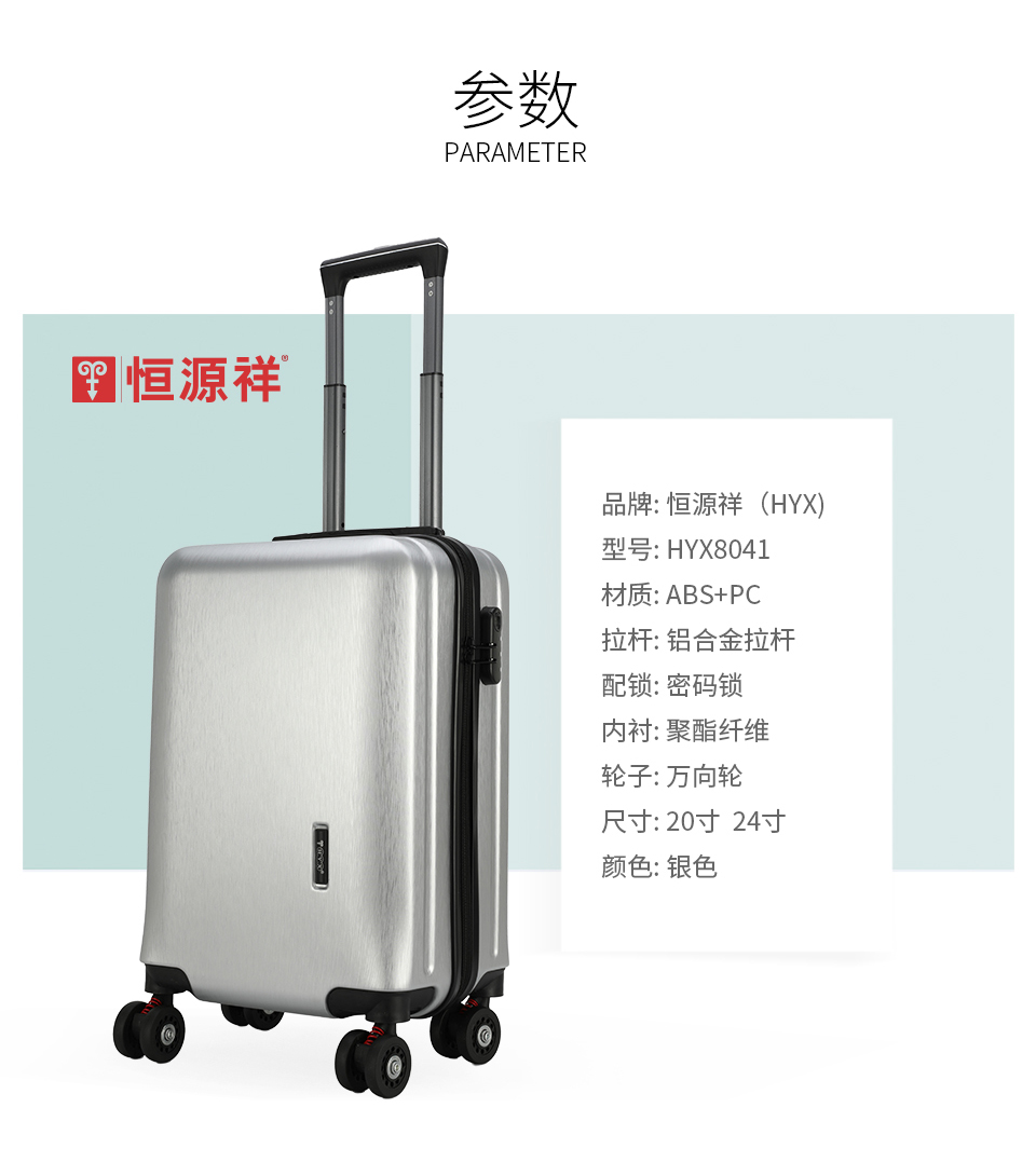 恒源祥(HYX)永恒拉杆箱 银色 HYX8041