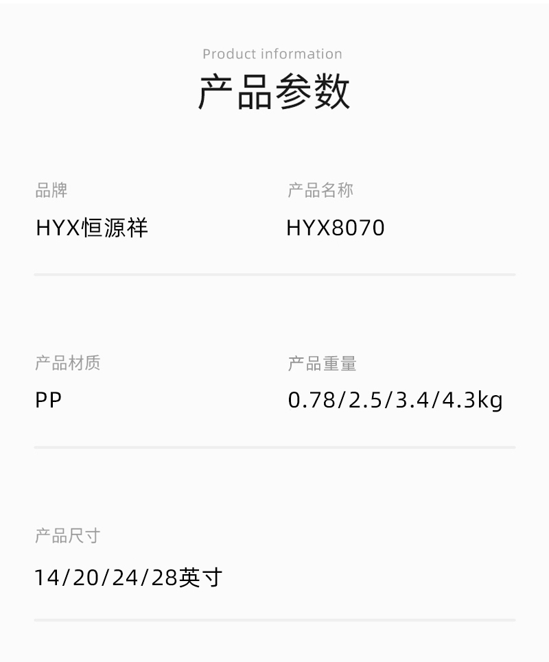 恒源祥(HYX)PP优质拉杆箱套装 HYX8070