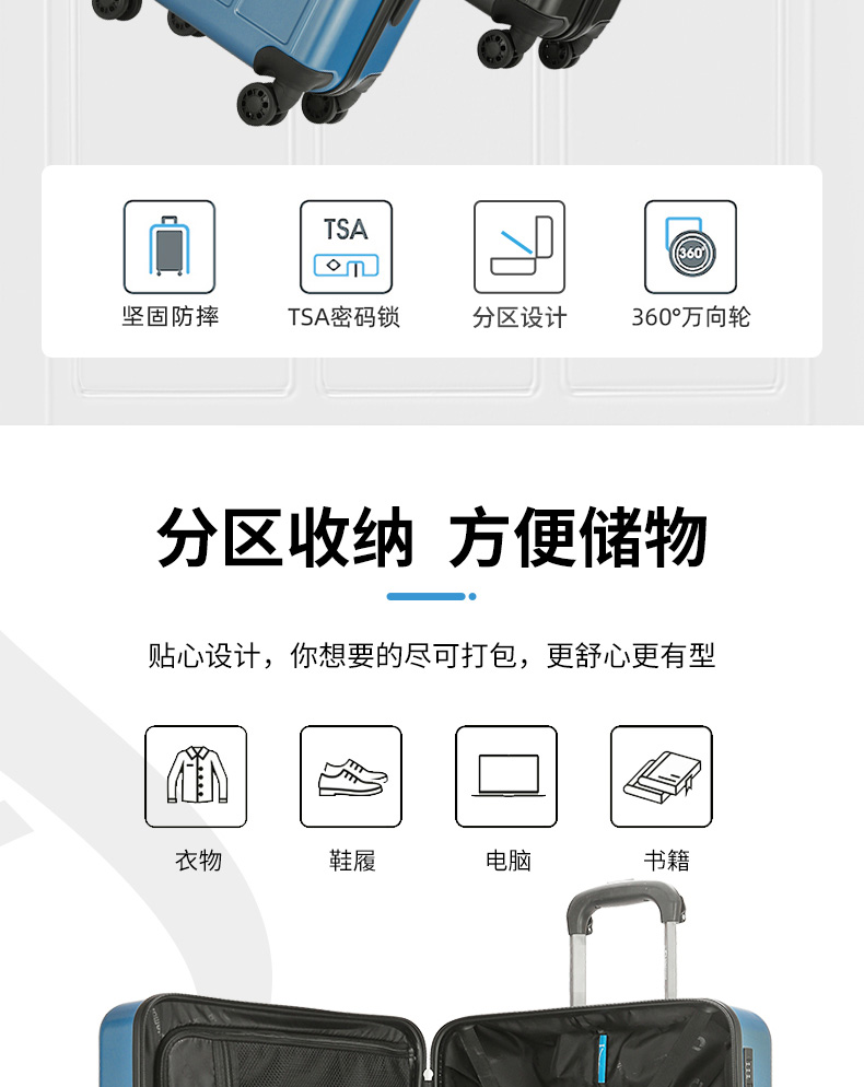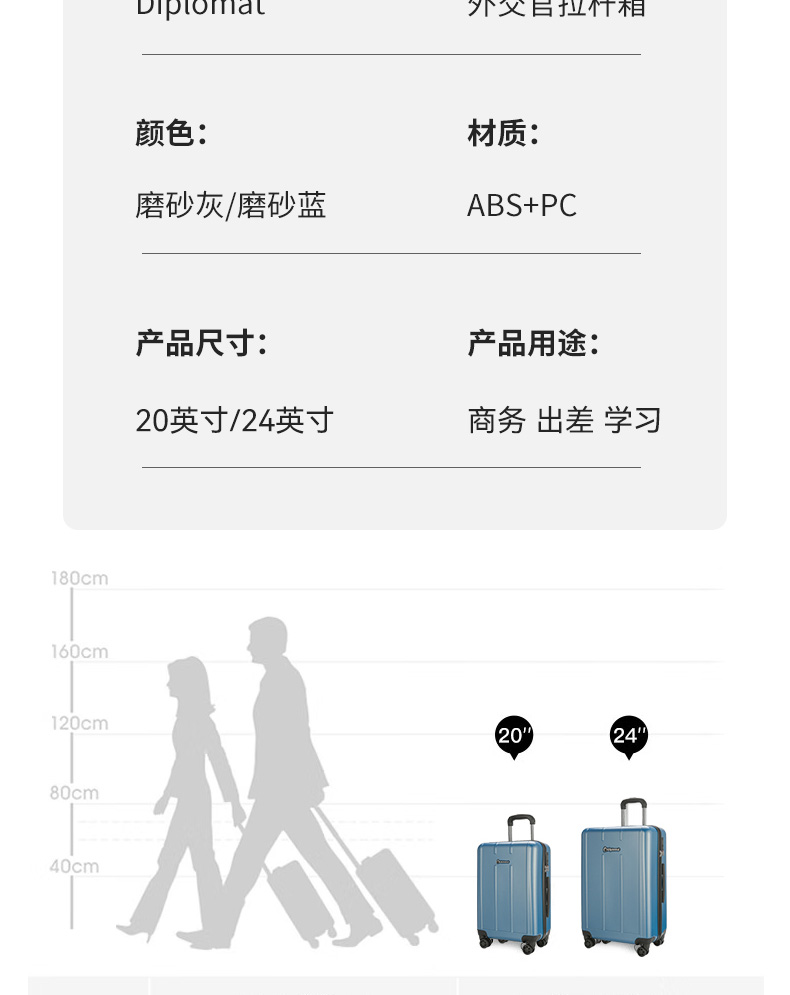 外交官YH-61092 ABS+PC 20寸拉杆箱单位:个 磨砂蓝 20寸