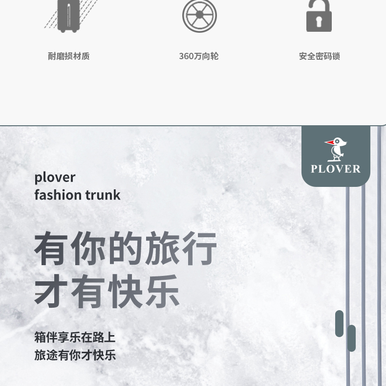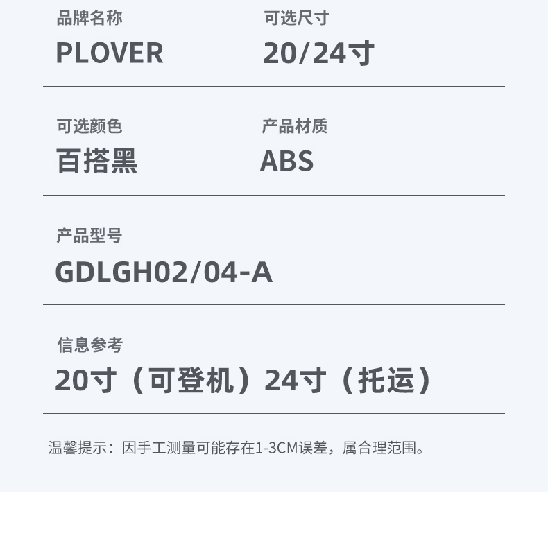 • PLOVER香港啄木鸟20英寸简约登机箱拉链款拉杆箱 GDLGH02-A/24英寸GDLGH04-A